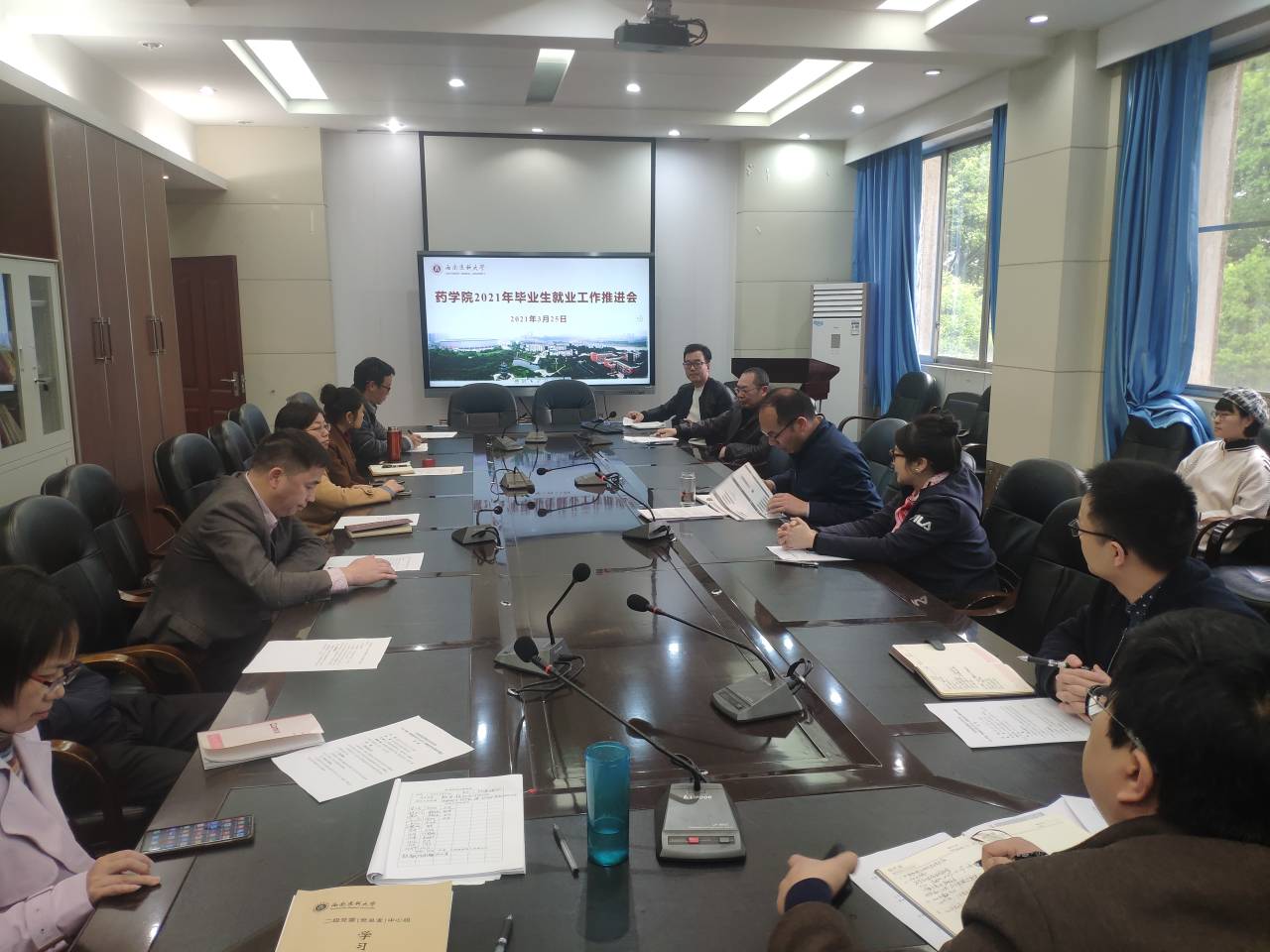 3月25日下午,药学院在忠山校区含光楼三楼会议室,召开了2021届毕业生就业工作推进会。药学院处科级干部,教研室、实验室主任以及就业结对帮扶教师,党支部书记、支部委员,学科建设办公室、学生科相关人员参加会议。会议由药学院主持工作副院长韦思平主持。