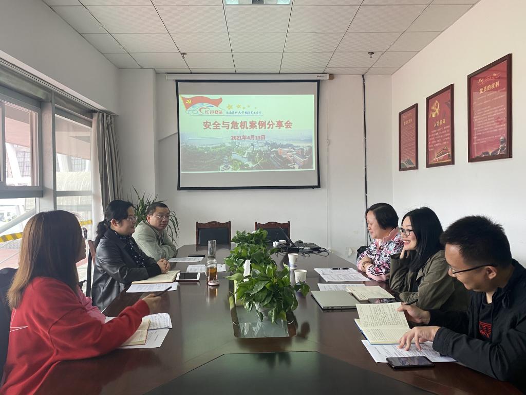 4月13日上午,红色e站辅导员工作室在法学院会议室开展了“安全与危机”案例分享活动,会议由法学院党总支副书记黄莉主持,工作室全体辅导员参会。