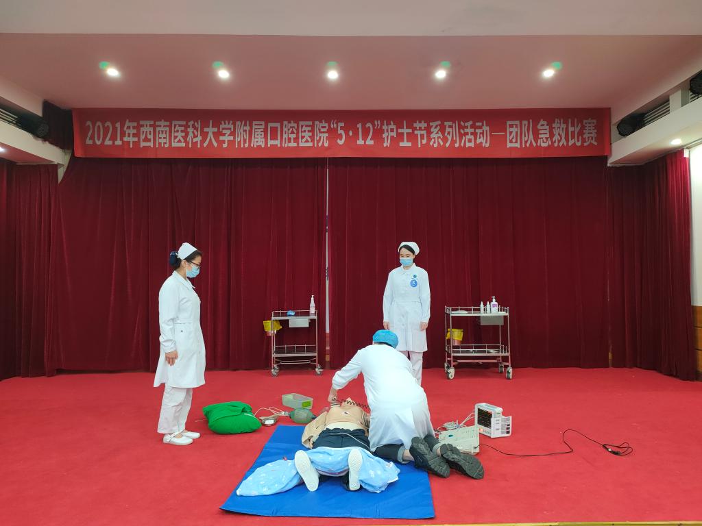 4月28日下午,附属口腔医院举办“纪念‘5.12’国际护士节系列活动——团队急救比赛”,旨在提高医院医护人员的紧急救治能力,增强团队协作精神,强化医护人员临床技能实践能力。