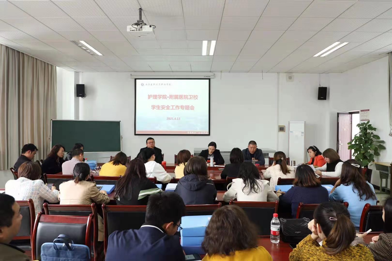 日前,护理学院·附属医院卫校在海川楼会议室召开学生安全工作专题会。护理学院·附属医院卫校党委书记孙鸿燕,党委副书记•纪委书记李文良,副院长谢长友以及院校科级干部、本科及研究生辅导员、卫校各校区管委会主任、团总支书记和学生科长助理及年级主任参会。会议由李文良主持。