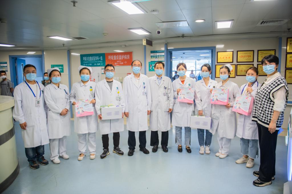 五四青年节当天,附属医院党委书记徐勇率团委、宣传•统战部等部门,看望慰问医院坚守岗位的青年代表,并通过他们向全院广大团员青年致以节日的祝贺和诚挚的问候。他勉励全院青年,要进一步坚定理想信念,增强担当本领,在各自的工作岗位上为老百姓服好务,为“健康中国、健康四川”贡献强大的青春力量。