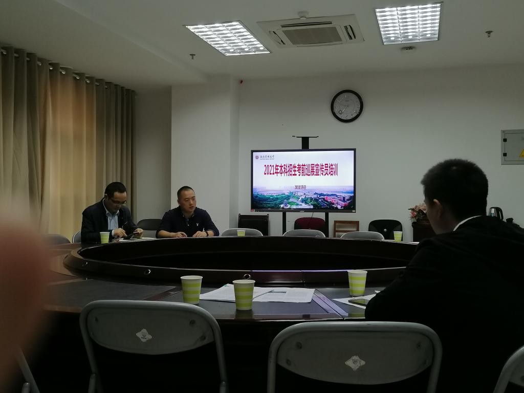 5月7日上午,学生工作处在城北校区德诚楼220会议室召开2021年线下本科招生宣传培训会。学生工作处副处长崔继东、招生办公室全体人员、线下招生宣传人员参加会议。会议由招生办公室主任罗俊主持。