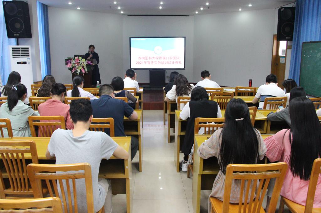 5月10日下午,2021年宣传工作实务培训结业典礼在附属口腔医院五楼大会议室举行。附属口腔医院党委书记代天祥、党委副书记兼纪委书记王宏丽出席会议,全体宣传员参加典礼。典礼由王宏丽主持。
