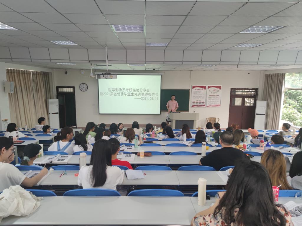 5月11日晚,医学影像系考研经验分享会暨2021届省优毕业生先进事迹报告会在忠山校区31阶教室举行,医学影像系学生科辅导员黄敏、2016级医学影像学专业的李倩和吕玉虎、2017级医学影像技术专业的丁有斌和冉汶青以及2018级全体同学参加了此次会议。