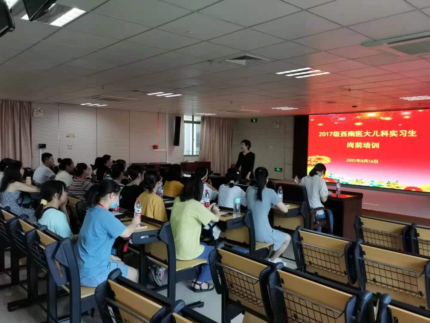 会上,医院科教部、宣传部、医务部、院感管理部等多部门向同学们进行了全方位的培训,内容涵盖医务人员行为规范和职业道德教育、医疗核心制度、病案书写、院感防控、科教管理制度等,为同学们认真严谨的完成实习工作打下了基础。