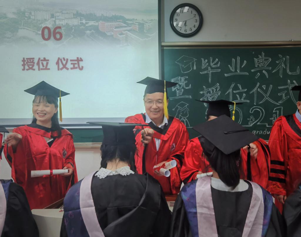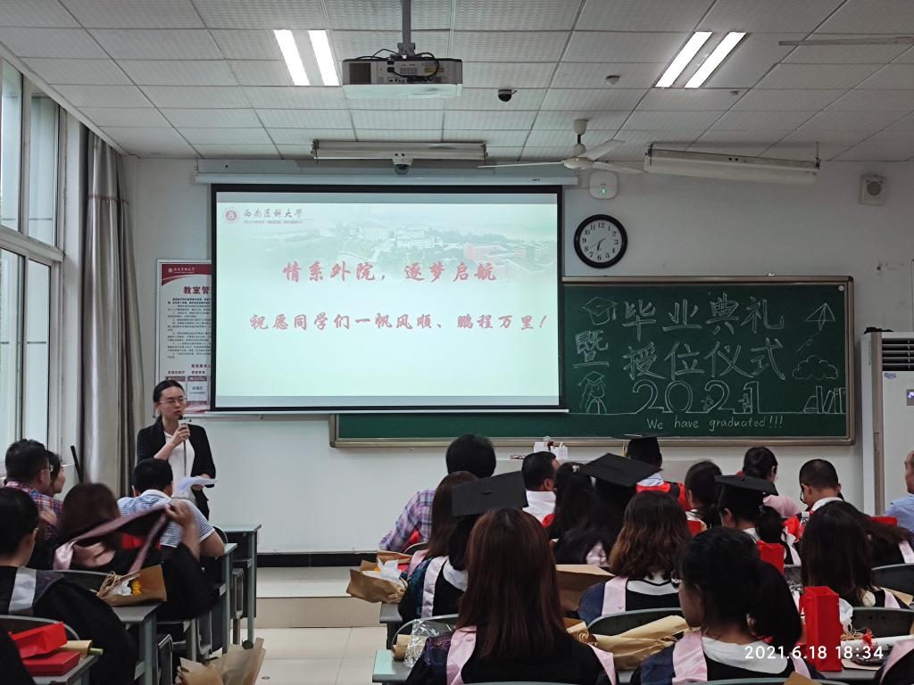 6月18日下午,外国语学院在海川楼203教室举行英语专业2021届毕业典礼暨授位仪式。学院党总支副书记邓盛木担任主持,学院领导、教师代表及全体毕业生参加活动。