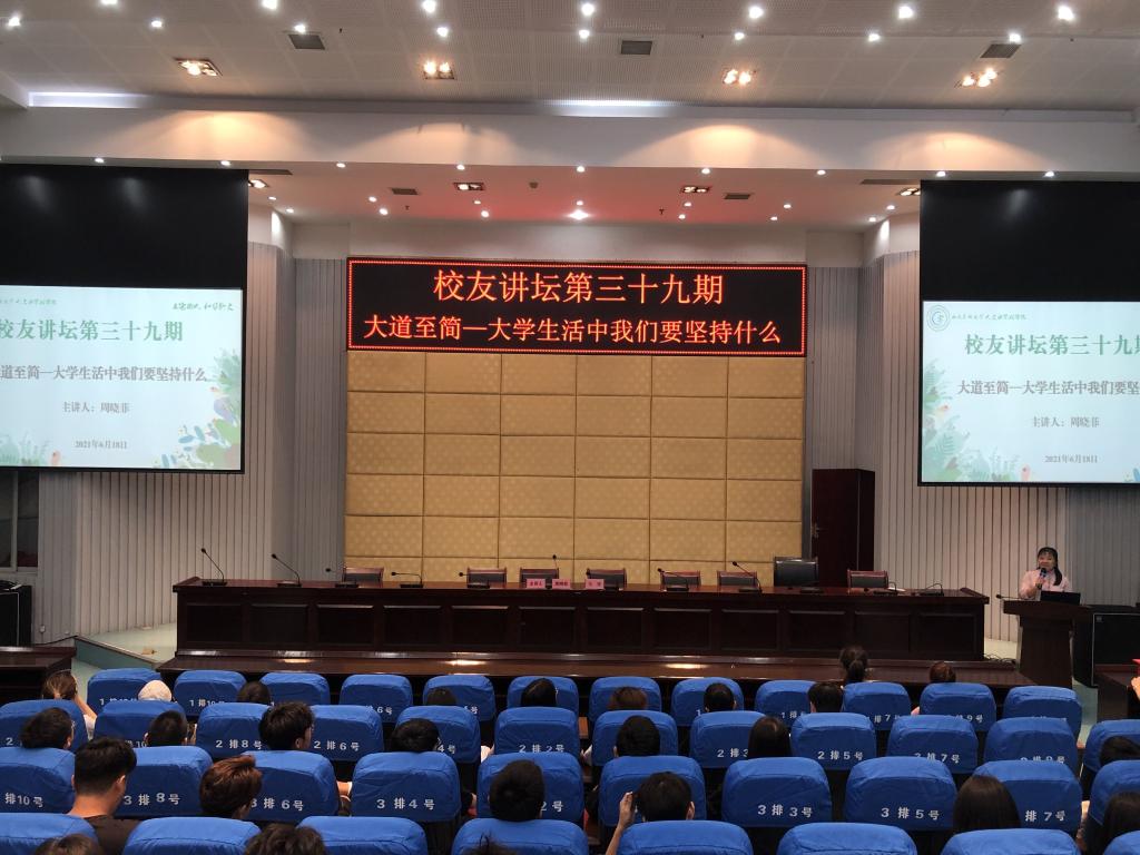 6月18日,由西南医科大学对外联络处、人文与管理学院主办的第三十九期校友讲坛在西南医科大学城北校区第二学术报告厅举行。本次讲坛邀请到2003级市场营销专业毕业生周晓菲为学院200余名学生带来“大道至简—大学生活中我们要坚持什么”的主题分享,市场营销教研室主任王启凤、辅导员刘恩泽等参加讲坛,讲坛由人文与管理学院党总支副书记马俊主持。