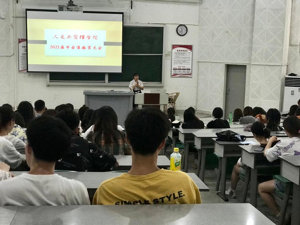 为强调近期各项毕业事项,提高毕业生安全意识。6月22日中午,人文与管理学院在鸿文楼301教室召开了2021届毕业生安全教育大会,大会由学院党总支副书记马俊主讲,学院学生科全体人员和2021届全体毕业生参加了大会。