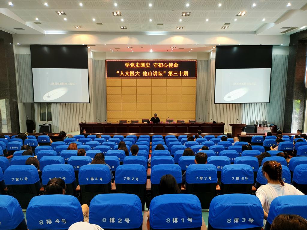 为创新党史学习教育形式,促进党建+科研学科新模式,人文与管理学院于6月23日在第二学术报告厅举办了“学党史国史•守初心使命”暨“人文医大•他山讲坛”第三十期讲座。本次讲座邀请到资深媒体人、作协会员、文化旅行家、知名文史学者周海滨作题为《口述历史的鲜活与深沉》的讲座,讲座由学院副院长谷满意主持,全院无课教师和学生共一百余人聆听了讲座。