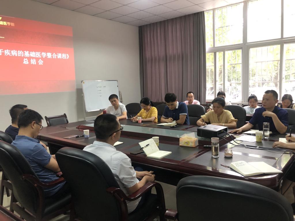 为进一步强化基础医学院“三位一体”课程体系内涵建设,提高课程教学质量,6月23日下午,基础医学院在鸿文楼大会议室召开了《基于疾病的基础医学整合课程》总结研讨会。基础医学院院长代荣阳、副院长涂江义、副院长曾永秋、教务科科长汤军、该课程的课程负责人、各教研室主任(副主任)、该课程教学团队教师共计20余人参加了研讨会,会议由涂江义主持。