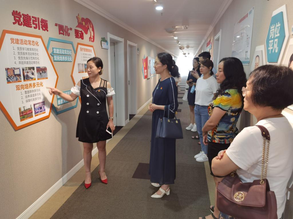 随后,图书馆党支部一行参观了医院“党群服务中心”,了解了医院的党建工作,双方还就服务理念、服务内容、特色服务、开展文化共建活动等进行了座谈交流。最后,大家重温了入党誓词。