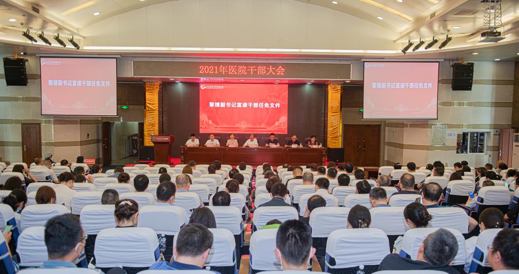 7月20日下午,附属医院在忠山院区外科学术报告厅举行2021年干部大会。附属医院全体院领导、职能部门负责人、临床业务干部、党支部书记等300余人参加会议。会议由附属医院党委副书记、院长江涌主持。