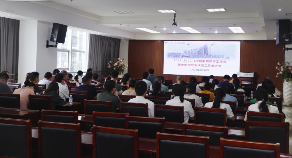 8月18日,西南医科大学附属中医医院召开2021-2022-1学期期初教学工作会暨中医学专业认证工作推进会,党委书记李志、院长刘建、副院长徐厚平、中医学专业负责人魏嵋、各教研室主任、教学秘书、全体基础教职工及相关职能部门人员等参加了会议。