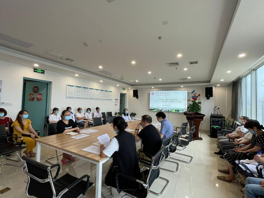 8月25日下午,儿科学系、临床儿科教研室在康健城住院部16楼儿科学习室,召开“2021-2022学年第一学期教学工作会”。系主任董文斌,系党总支书记杨敏,临床儿科主任、临床儿科教研室主任刘文君,系党政办公室,学生科,教研室主任及相关科室负责人参加了会议,会议由杨敏主持。