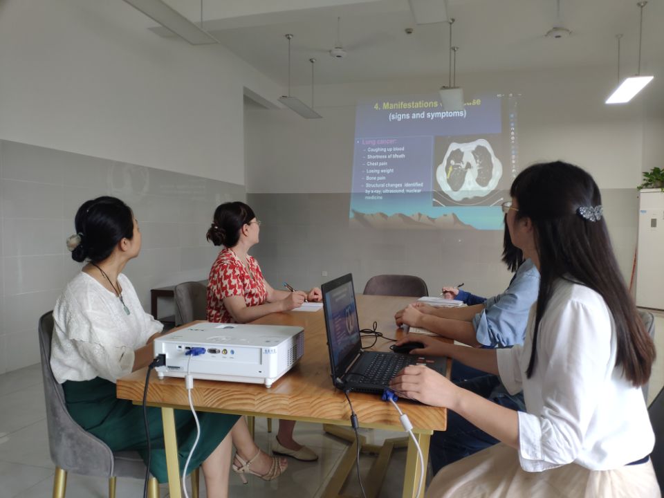 因受全球疫情影响,留学生教育本学期仍然以线上授课形式开展教育教学工作,主要使用“钉钉”“超星”等平台开展线上教学。通过线上全场参与肖秀丽教授在2019级临床医学课程直播钉钉群为留学生讲授的《病理学》;王瑶在2018级留学生临床医学院直播钉钉课讲授的《口腔医学》;吴蔚华教授在2017级留学生临床医学院直播钉钉课讲授的《内科学》等线上课程,充分了解到新学期开学留学生主讲教师线上授课情况、学生课堂出勤情况以及教学保障情况,留学生直播课程总体教学秩序井然有序。