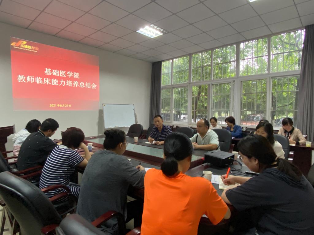 为了进一步做好基础教师医学能力培养工作,8月27日上午,基础医学院副院长涂江义在基础医学院小会议室组织召开了基础教师医学能力培养总结调研会,全体参训教师参加了本次会议。在收集整理参训教师的意见和建议后,涂江义指出:要加强宣传,提前营造医学能力学习氛围,充分利用寒暑假假期常态化开展医学能力培养,有效开展基础教师参训前的培训工作。