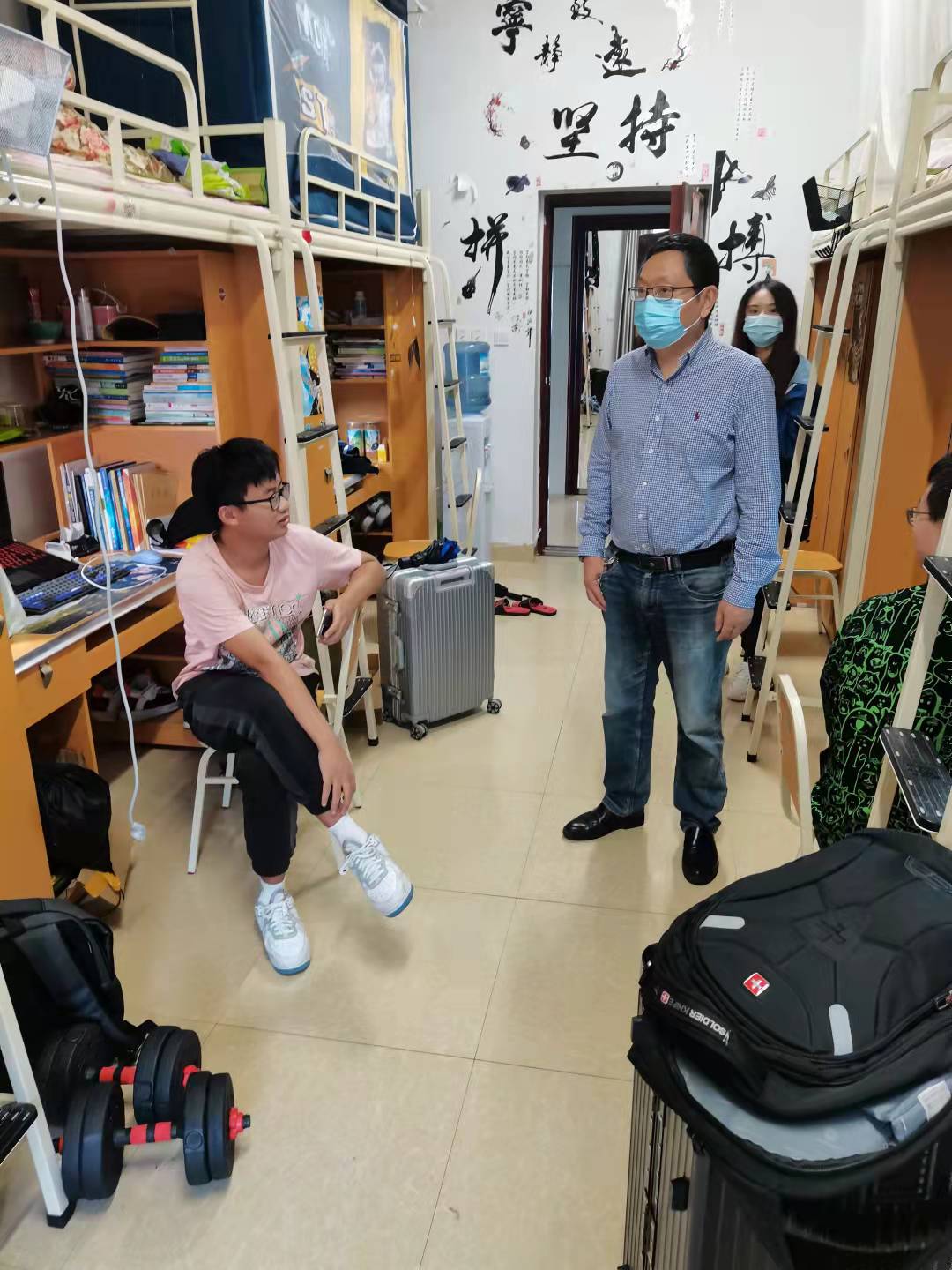 新学期伊始,为进一步了解学生疫情期间返校情况,8月28日下午,麻醉学系党总支书记王晓斌、党政办及学生科教师深入走访学生寝室,搜集学生思想动态,关心学生学习生活中的困难,提醒学生学业、安全和疫情防控事宜。