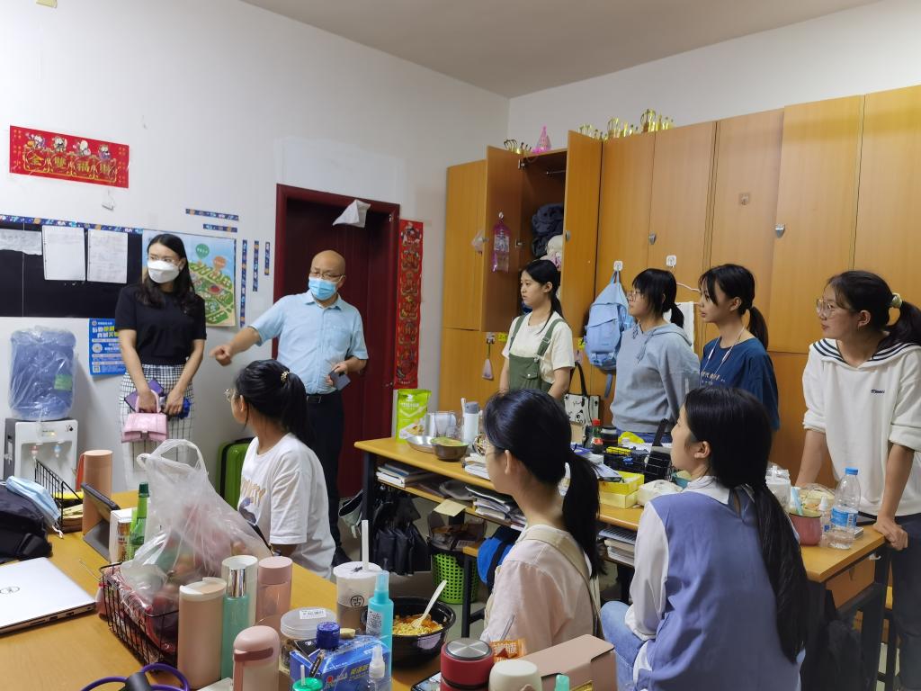 按照新学期工作安排,我校2021年秋季学期老生于8月27日、28日从省内外返校,为深入了解返校学生的思想动态和学习生活状况,进一步落实《西南医科大学领导干部深入基层联系学生工作实施办法》,8月28日晚,医学检验系党总支书记吕春、人事处副处长余郭莉带领学生科辅导员老师分别走访城北和忠山两校区学生寝室,关心慰问返校学生。