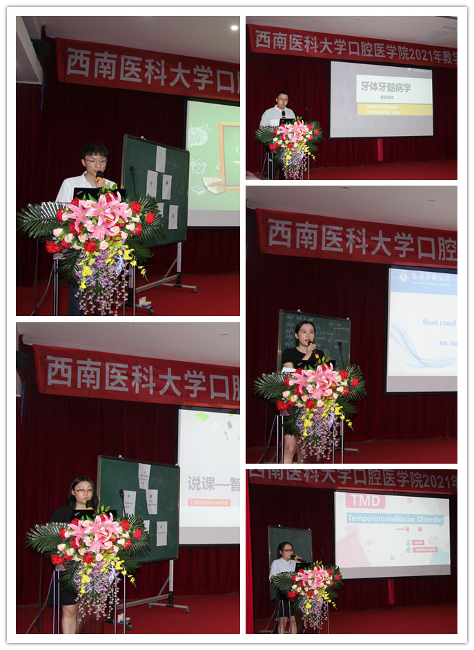 为推动口腔医学院双语教学工作的发展,进一步提高双语教学授课质量,按照学校《关于举办西南医科大学2021年度教学竞赛的通知》文件精神,口腔医学院于8月31日在附楼多功能厅举办2021年双语教学竞赛,来自6个教研室的6名教师同台竞技。学院分管教学工作副院长郭玲、各教研室主任担任比赛专家评委,10名2017级口腔本科生担任学生评委,全院任课教师、口腔本科实习生、口腔进修生到场观摩学习。此次竞赛由教务科科长李兰萍主持。