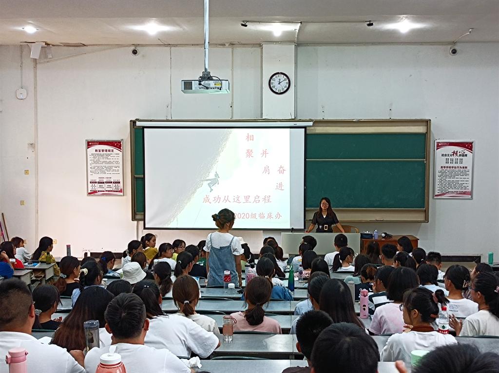 为使转专业同学更快适应和融入新的学习环境,了解新专业、年办规章制度,基础医学院2020级临床办于9月2日在荟文楼204举行“‘相聚 并肩 奋进’成功从这里启程”转专业学生见面会。年办副主任阳永连,辅导员邝蓓蕾、唐义杰、杨忆雪,部分学生干部及120名转专业同学参会。会议由阳永连主持。