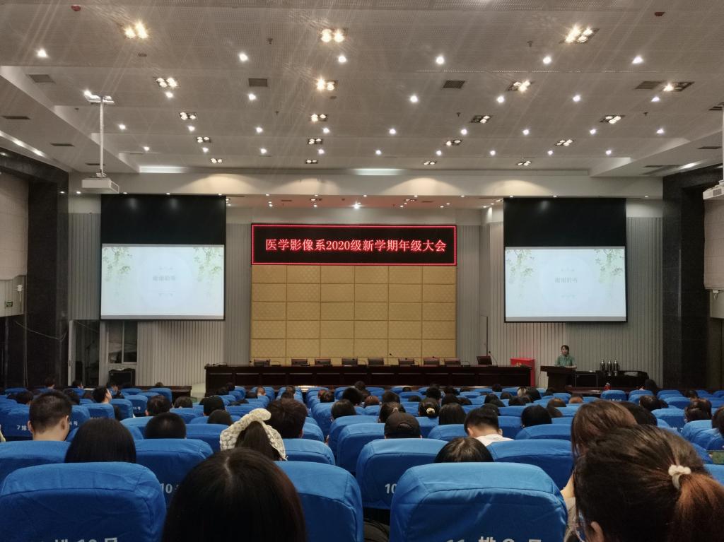 为加强新学期学风建设,教育引导学生尽快适应新环境、调整新状态、确立新目标,9月2日,医学影像系2018级、2019级和2020级新学期年级大会分别在忠山校区32阶、城北校区第二学术报告厅召开。医学影像系学生科副科长苏娜、辅导员黄敏、郑琦以及2018级、2019级和2020级全体同学参加了会议。