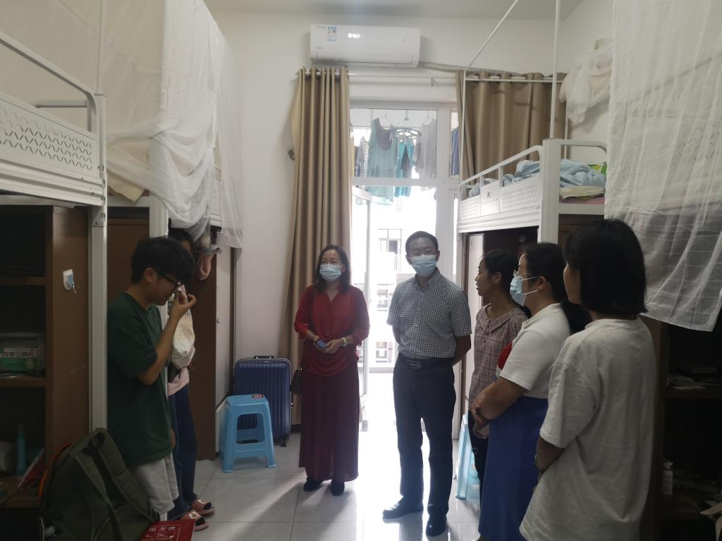 为深入了解2021级本科新生入学情况,引导同学们尽快适应新生活新环境,9月6日下午,法学院党总支书记廖女男、院长罗刚、党总支副书记黄莉及学生科老师一同前往新生寝室进行走访慰问。