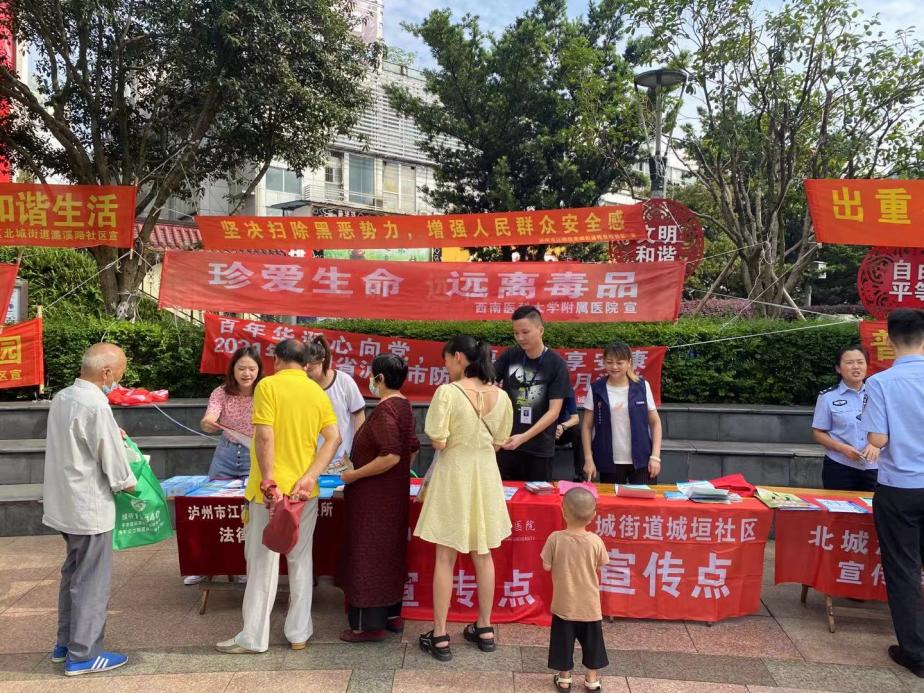 9月10日上午,北城社会治理办牵头组织北城派出所、北城街道办、西南医科大学附属医院在白塔广场开展了禁毒防毒宣传活动。