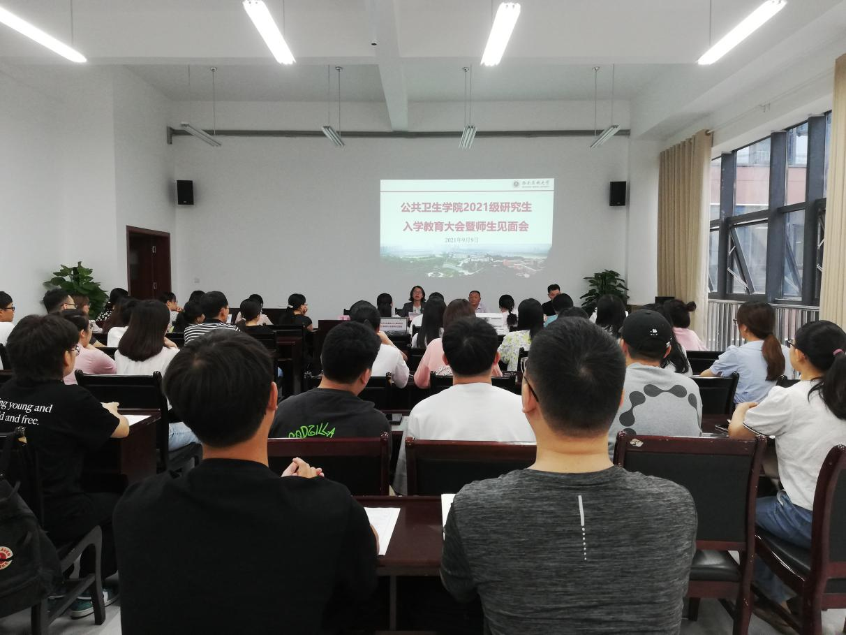 9月9日上午,公共卫生学院2021级研究生新生入学教育暨师生见面会在仁济楼319会议室举行。学院党总支书记张依国、院长马玲、副院长汤艳和研究生导师以及全体2021级研究生参加会议。马玲主持会议。