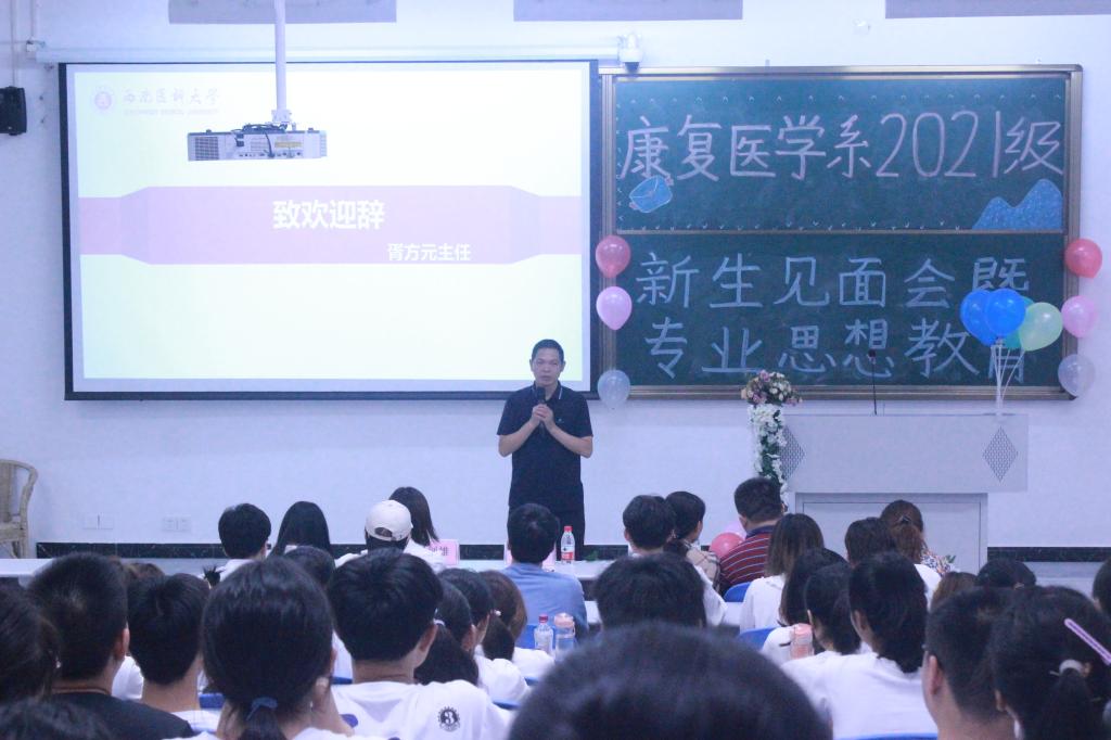为使新生更快、更好的完成由高中生到大学生的角色转变,迅速融入到大学生活中,康复医学系于9月10日在学海楼举办2021级新生见面会。系主任胥方元、系党总支书记张贻聪、康复医学科副主任王剑雄、系党政办主任黄静、系学生科科长侯萍、临床康复学教研室教学秘书虞记华、2021级3班班主任胡月、学生科辅导员何雪等出席,康复医学系群团组织学生代表、助理班主任及2021级全体新生参加。