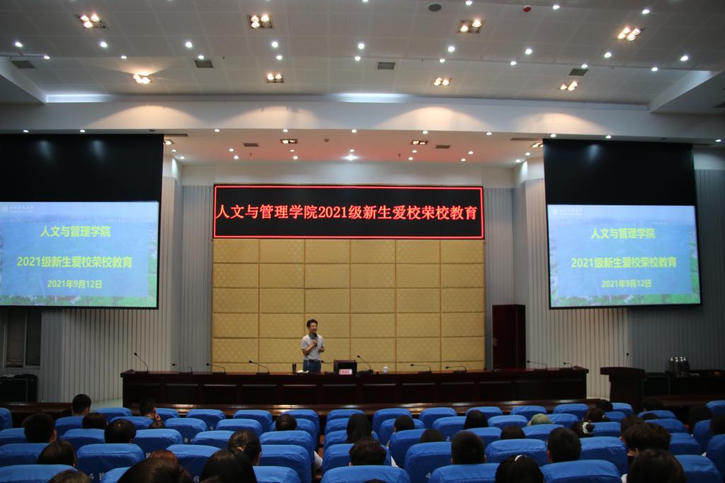 为让2021级新生了解学校的光辉发展历程,感悟学校的校园文化底蕴,9月12日晚,人文与管理学院在城北校区第二学术报告厅举行了2021级新生爱校荣校教育。本次活动由人文与管理学院人文教研部主任姚洪伟主讲,学院全体2021级新生参加了此次教育活动。