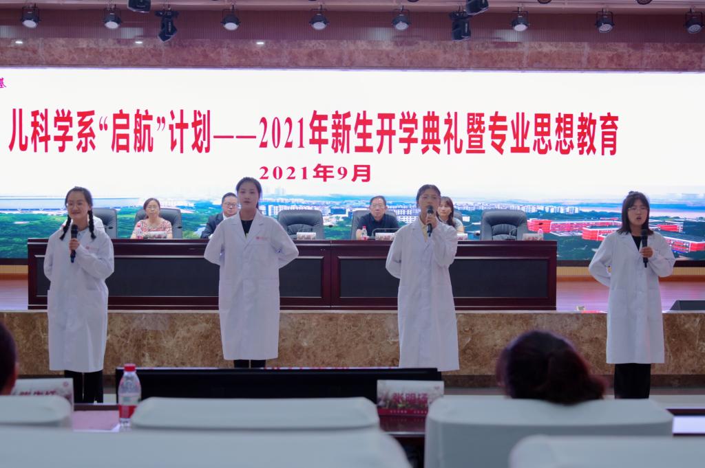 活动在庄严的国歌中拉开帷幕,董文斌热烈欢迎了新同学的到来,并表示,儿科学系的光辉历史,成就于不懈奋斗的儿科人,儿科学系的美好未来,寄托于满载希望的新同学,希望新同学们脚踏实地,学好专业知识,未来的儿科学系,将以你们为荣。