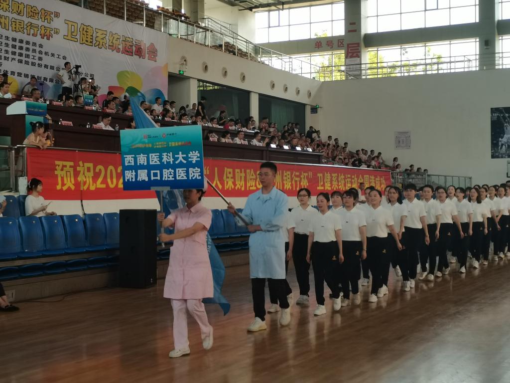 9月25日,由泸州市卫生健康委员会举办的泸州市卫生健康系统全民健身运动会开幕式暨健身操大赛,在泸州市奥体中心篮球馆召开。由附属口腔医院职工组成的西南医科大学附属口腔医院代表队参加了开幕式。