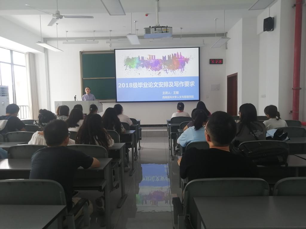 王敏首先对本届毕业论文工作进行了安排部署,强调了文献综述、开题报告、初稿、定稿、答辩等各环节的时间节点。接着对论文选题、文献收集、论文结构进行了重点讲解。在论文选题方面,应坚持时效性、可行性、专业性原则,关注新闻热点、时事政策,选取和专业相关的内容开展研究,研究范围宜小不宜大。对于文献的收集,推荐使用学校图书馆电子资源,同时指出,在选择参考文献时,应尽量选择核心期刊及以上级别文献,并尽量选用近3-5年的文献。在论文的写作上,论文题目、摘要以及关键词要阐明研究方向,浓缩论文的内容;正文的结构可参考自科类、社科类两种不同的写作范式。鼓励同学们根据自身情况开展案例研究或实证研究,指出写作中论点要明确,论据要充分,语言要精炼。