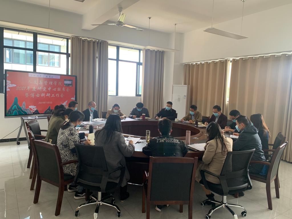 为增强研究中心及博士的凝聚力,提升博士对科研平台等事业发展的积极性,促进交叉学科发展,日前,人文与管理学院在文渊楼学术交流会议室召开2021年度研究中心联席会暨博士科研工作会。会议由学院副院长谷满意主持,学院院长赵成文、党总支书记陈屹、党政办公室负责人黄诗韵、学科建设办公室负责人刘欣、全体研究中心负责人、秘书和全体博士参加了线下会议,其余教职工参加了线上腾讯同步会议。