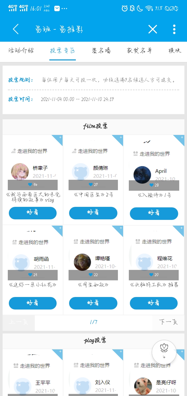 21级临床办107名同学踊跃参加此次活动,在易班微社区、新浪微博或者视频平台分享自己喜欢的电影、电视剧、书本、音乐或者医大美食美景等,通过此次活动,同学们互相分享了种类丰富的文学、电影或者自己生活点滴等。本次活动的成功举办有助于增强年办同学之间相互了解,丰富了学生的课余生活,有利于提高学生个人修养,培养更多的兴趣爱好。