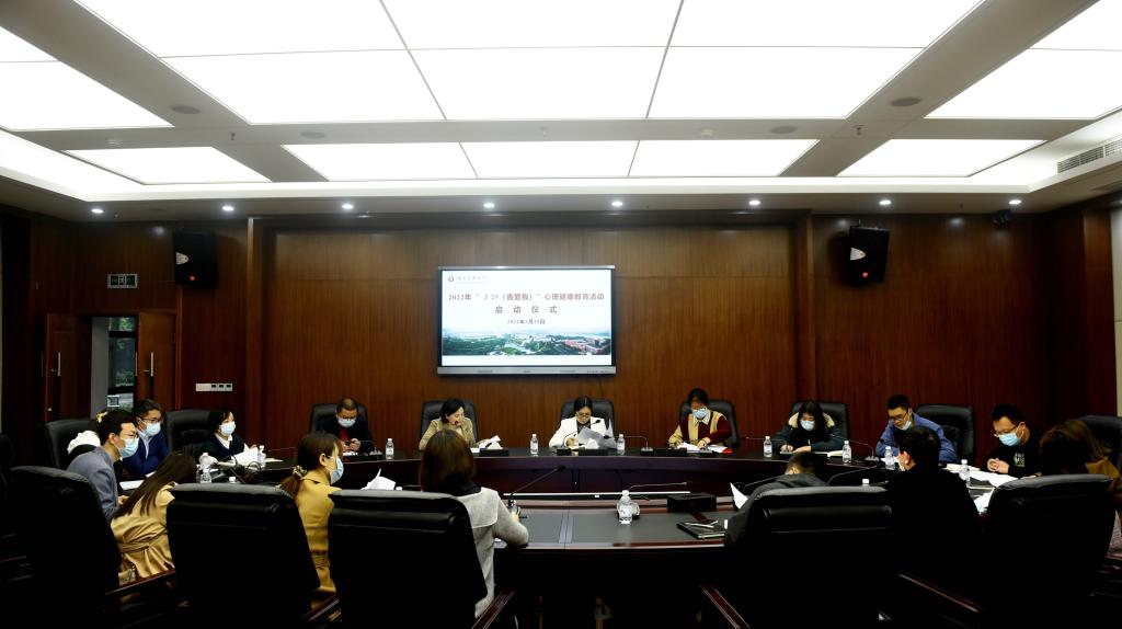 2022年3月31日上午,我校2022年“5•25”心理健康节活动启动仪式在城北校区第一会议室举行。学生工作部副部长易娟,各二级心理健康辅导站站长及学生心理健康教育与咨询中心全体人员参加了启动仪式,启动仪式由学生心理健康教育与咨询中心主任蒋玉梅主持。