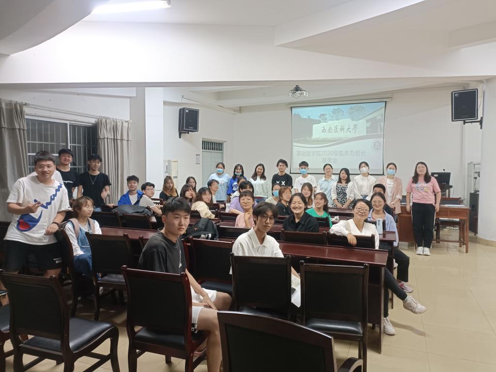 为深入贯彻落实学校学生会班长联席会议精神,以服务学生、关心学生成长为宗旨,切实维护西南医科大学学生权益,基础医学院2020级临床办于4月29日晚在基础医学院鸿文楼大会议室召开班长联席会,年级副主任阳永连,辅导员邝蓓蕾、张菲阳,年级学生会主席团及各班班长参加会议,会议由学生会主席王雨波主持。