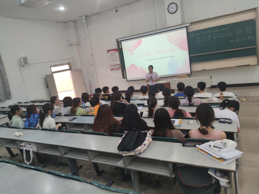 近日,医学检验系学生科科长李尚学、辅导员刘泸分别来到医学检验专业2020级1班和2021级1班的主题班会课堂,与全体学生共同参加名为“善爱青春之我”的心理主题班会。主题班会由各班心理委员主持。