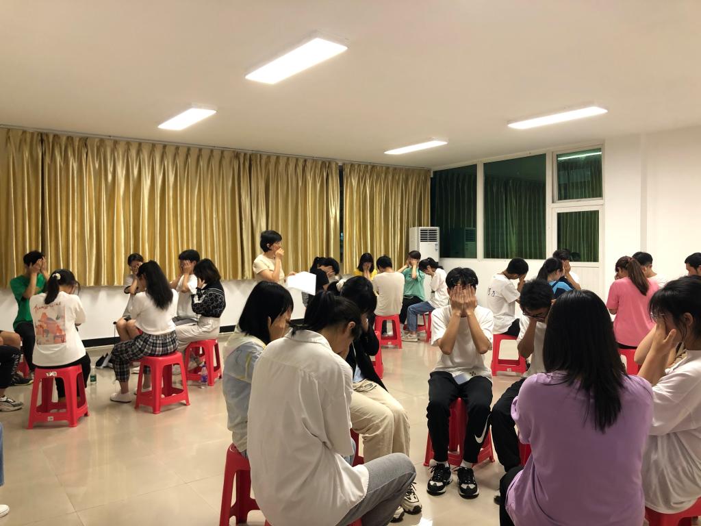 徐浩岚将同学们分为“花”“开”“富”“贵”四个组,询问同学们在当下是否感到紧张和焦虑、注意力难以集中,同学们积极发言,踊跃与徐浩岚进行互动。接着徐浩岚带领同学们进行了“正念呼吸”“正念进食”以及“身体扫描”等活动,并为大家阐述正念以及正念给身体和情绪带来的好处。