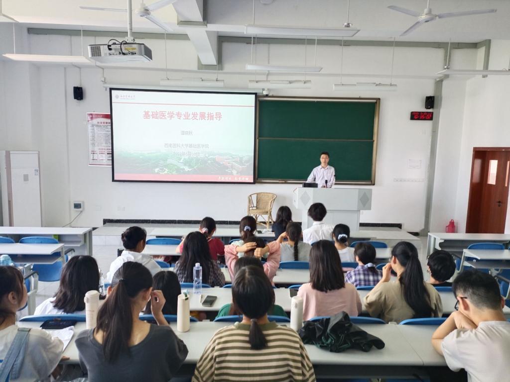 为了让同学们尽早明确专业发展方向,坚定自己的学习目标,5月10日,基础医学院在学海楼504举办了“基础医学专业发展指导”为主题的讲座,基础医学院副院长谭晓秋教授作为主讲人,2021级基础医学专业全体同学参加,讲座由辅导员助理姜虹主持。