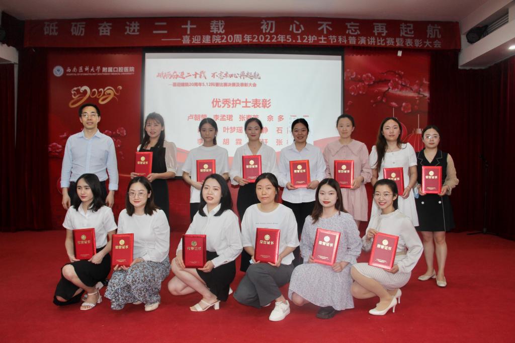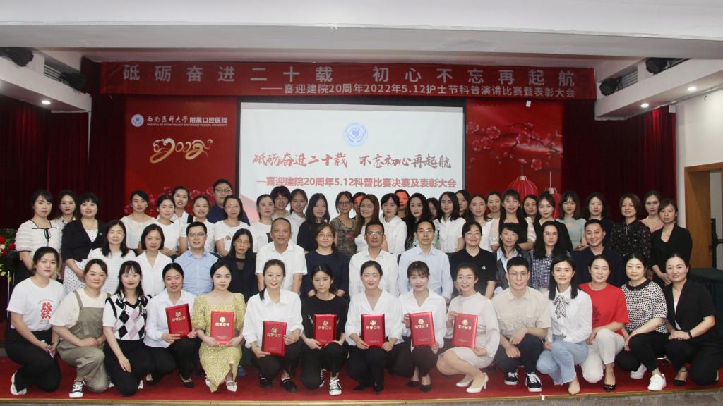 为庆祝建院20周年和“5·12”护士节,5月12日下午,附属口腔医院护理部组织举办“砥砺奋进二十载 初心不忘再起航——喜迎建院20周年‘5·12’护士节科普比赛决赛暨表彰大会”。医院院领导、部分职能科室负责人和临床科室主任以及全院护理人员参加活动。活动由周铭礼主持。