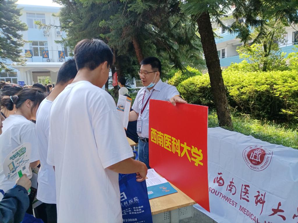 本次招生宣传在资阳中学、自贡一中、富顺二中等15所高中校园内展开,共发放招生宣传册1200余册,接待考生咨询1000余人次。麻醉学系招生宣传工作人员陈磊对前来咨询的师生介绍了学校学科特色、硕士点和博士点情况、非医学专业分数线以及麻醉专业的考研和就业情况,鼓励考生积极报考西南医科大学。