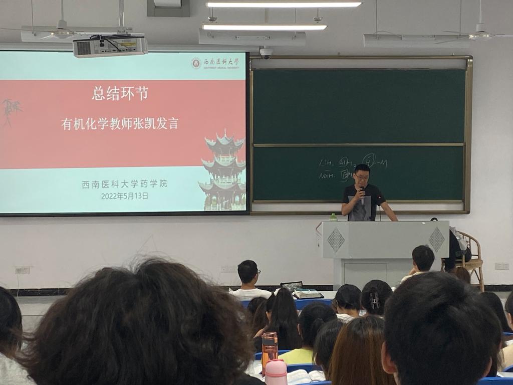 张凯在发言中,肯定了陈睿玲的学习方法和学习思路,针对同学们学习的现状,以及当下存在的主要问题,补充强调了三点学习建议,一是通过复习整合课程,从而巩固《有机化学》基础;二是端正学习态度,步步扎实破万难;三是学习过程中,必须领悟背后的逻辑,并反复练习巩固,切忌死记硬背。