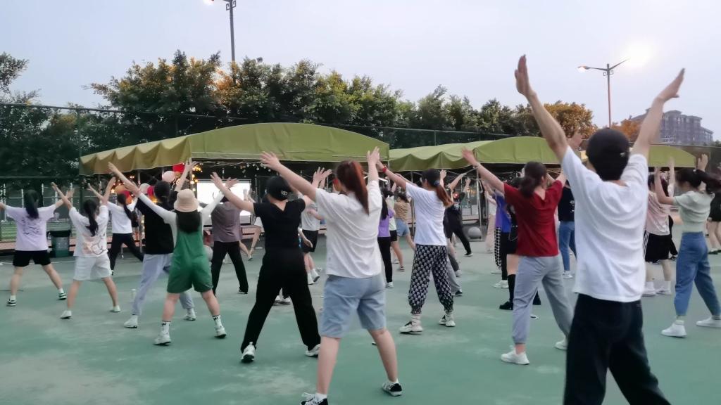 健身操结合当下火爆全网的刘畊宏健身操,领操带领同学们开展热身和运动,现场气氛热烈,路过的同学们受到感染,在队伍后跟着运动起来。活动最后,麻醉学系舞蹈队带来的青春舞蹈获得阵阵掌声。瞬时,尖叫声、欢呼声响遍整个操场。活动后天色渐暗,活动的彩灯光彩夺目,同学们纷纷拍照留念。