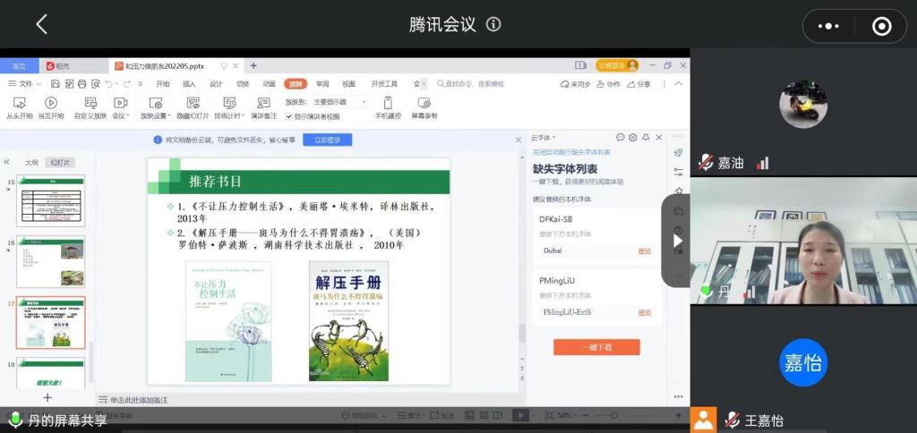 为了普及心理健康知识,让同学们学会应对学习生活中的压力,5月18日晚上法学院举办了“和压力做朋友”线上心理健康主题讲座。此次讲座由人文与管理学院冯淑丹担任主讲老师,法学院全体学生积极参与。
