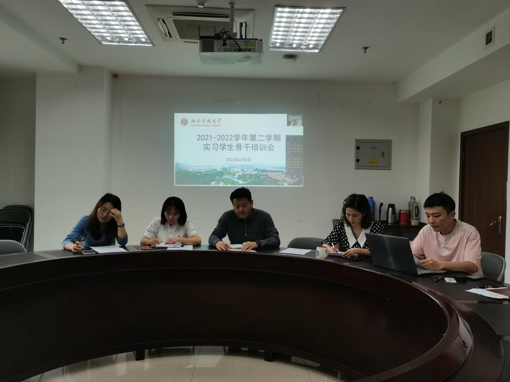 会上,教务处、组织部、人事处、学工部、校团委等各职能部门领导老师就学生在实习期间的疫情防控、专业学习、日常管理、安全教育、考研就业、党团组织建设和活动开展等事项进行了业务培训,并对实习工作要求进行了说明和强调,要求学生注意以下几点:一是深刻认识实习的重要意义,将理论知识与实践技能相结合;二是严格遵守基地及学校管理规定,注意人身安全和疫情防控工作;三是圆满完成实习任务,努力提升个人综合能力;四是发挥好实习生干部作用,正确处理与同学、单位、医患关系;五是积极工作,展现我校学子良好精神风貌。本次培训会有效地帮助实习学生骨干全面了解实习期间的各项要求,达到了预期培训目的。