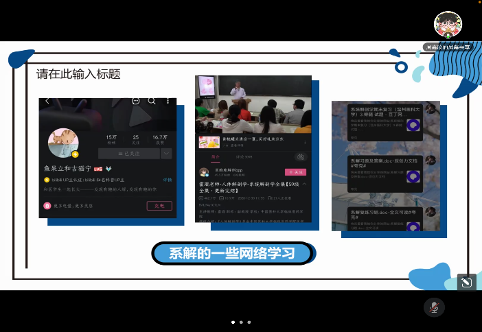 4名同学精心制作PPT,结合学科内容跟大家分享了自己的学习方法与解题思路。针对较难的组织胚胎学和系统解剖学这两门课,彭丽同学提出“整体思维、连贯记忆”“细节记忆、比较区别”的学习方法,杨蕊瑞同学建议寝室里互相抽背,充分利用标本资源,先背后练,周嘉欣同学认为要学会画思维导图,多做题,多看书,卓慧娴同学则传授了大家做笔记“由厚到薄”及“由薄到厚”的过程,建议同学们在学习计划上要懂得井然有序、有的放矢。4名同学知无不言、言无不尽,毫无保留地给2021级同学传授学习经验和解题技巧,同学们也热情高涨,积极与学姐们交流互动,增长了学习经验。