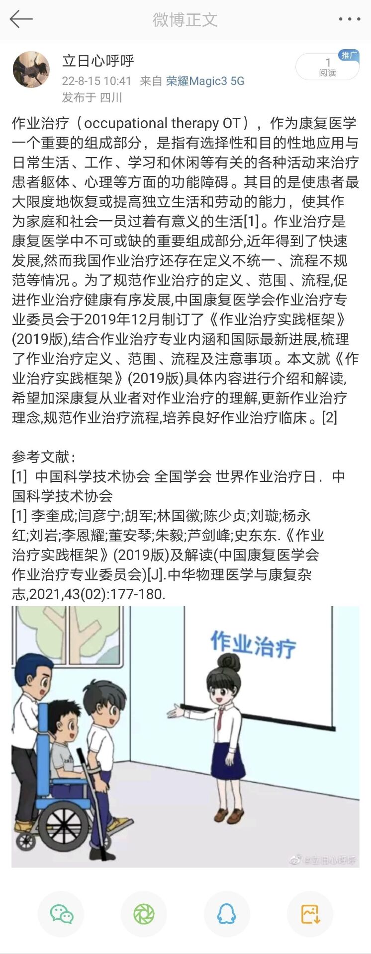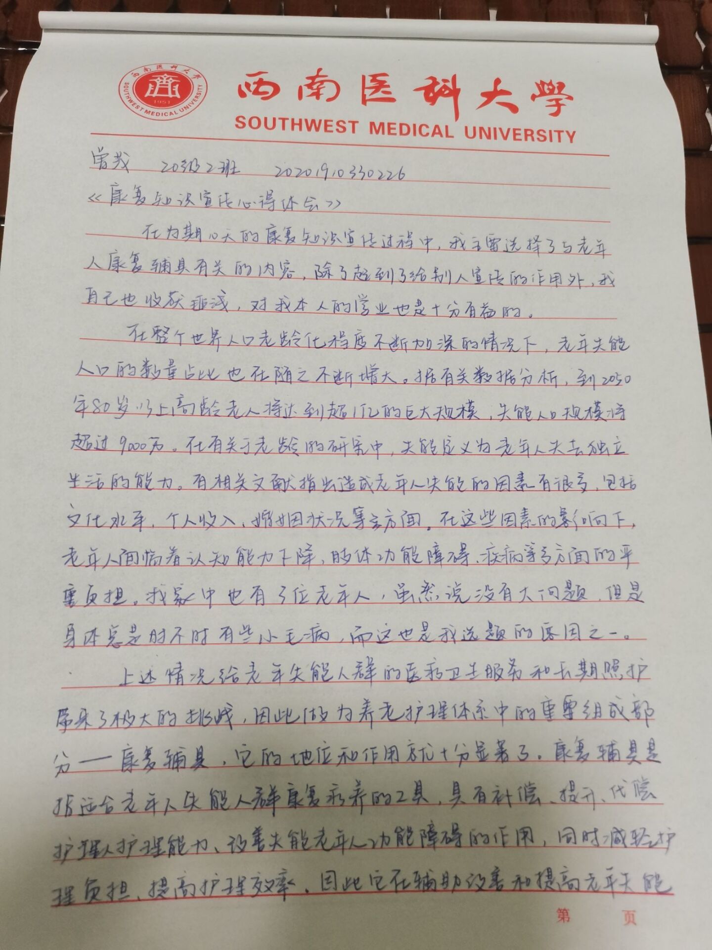 活动过程中,同学们通过知网、维普、万方、PubMed等平台查阅与康复相关的文献后进行学习,再运用QQ、微博、微信等社交软件宣传康复领域的科普知识,对于康复在大众中的传播和推广有着良好的影响力和积极性。活动结束后,同学们相互交流与学习,通过手写文稿,手抄报,视频等多种方式来记录对于此次活动的感悟和收获,在康复医学系掀起了一股学习的热潮。