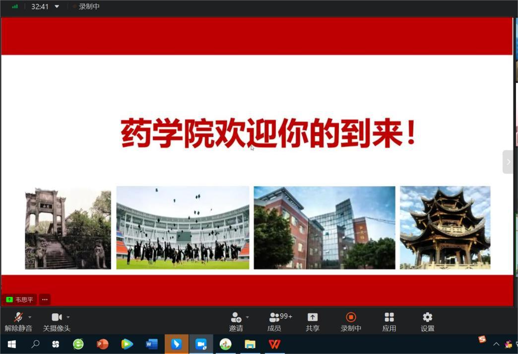 日前,药学院通过钉钉举办了2022级研究生新生线上见面会暨入学教育。药学院党委副书记、院长韦思平,党委副书记、纪委书记唐艳斌,学科建设办公室全体成员,以及2022级全体研究生参加了会议。会议由学科建设办公室主任王芳主持。