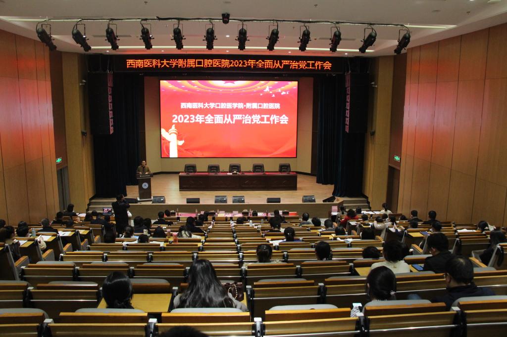 3月15日,附属口腔医院2023年全面从严治党工作会在云峰路院本部学术报告厅召开。医院全体院领导,全体月度例会成员,全院医生,党政办公室、组织人事科、宣传统战科、纪检监察室、基建后勤科、财务科全体人员参加了会议。会议由党委副书记、院长肖金刚主持。